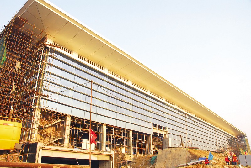 昨日在蚌埠高鐵站施工現(xiàn)場(chǎng)看到,高鐵站站房玻璃幕墻已安裝過(guò)半。