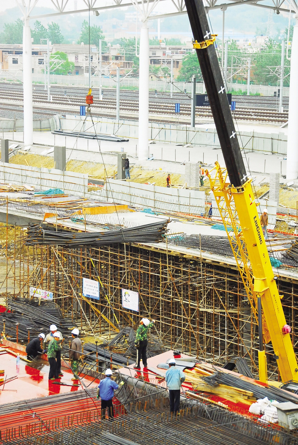 5月22日,高鐵站進站高架工程正在進行高架主體施工。