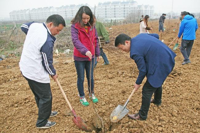 植樹現(xiàn)場,大家分工協(xié)作,揮鍬、挖坑、扶苗、填土,各個環(huán)節(jié)銜接有序,呈現(xiàn)一片熱火朝天的景象。經(jīng)過兩個多小時的勞動,大家共栽下近兩百顆樹苗。大家希望種下的樹苗能夠茁壯成長,成為蚌埠的空氣凈化器和綠色的風(fēng)景線