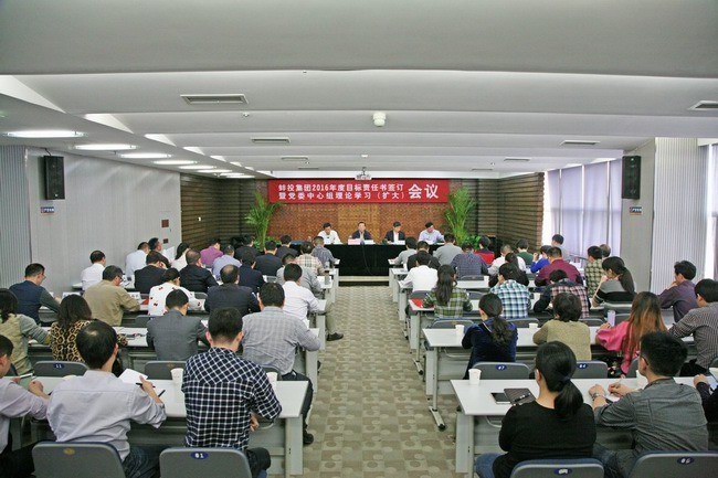 4月14日下午,集團召開2016年度目標責(zé)任書簽訂暨黨委中心組理論學(xué)習(xí)(擴大)會議。集團黨委中心組成員、所屬子公司負責(zé)人、黨組織負責(zé)人,集團公司全體人員參加會議。黨委書記、董事長、總經(jīng)理汪支邊主持會議。