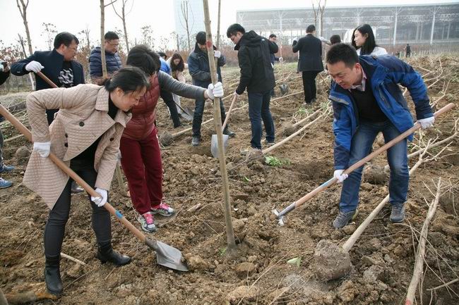 在技術(shù)人員的指導(dǎo)和示范下,大家一起行動(dòng),揮鍬鏟土、培實(shí)新土、扶苗踩壓……認(rèn)真細(xì)致地做好一道道工序,現(xiàn)場(chǎng)呈現(xiàn)一片熱火朝天的景象.經(jīng)過(guò)兩個(gè)小時(shí)的緊張勞動(dòng),共栽下近百顆樹苗。